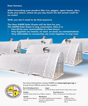 Nigerian Stored Products Research Institute (NSPRI) was established in 1948 as West African Stored Products Research Unit (WASPRU) to assess the quality of exportable crops from Nigeria, Ghana, Sierra Leone, and Gambia to United Kingdom during the colonial era. It became Nigerian Stored Products Research Institute after the independence in 1960.